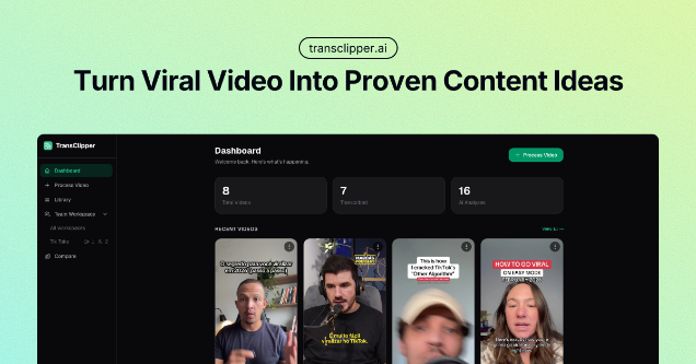- • Skipped from h1 to h4: "Turn Viral Video Into Proven Content Ideas" -> "Recent Transcripts".